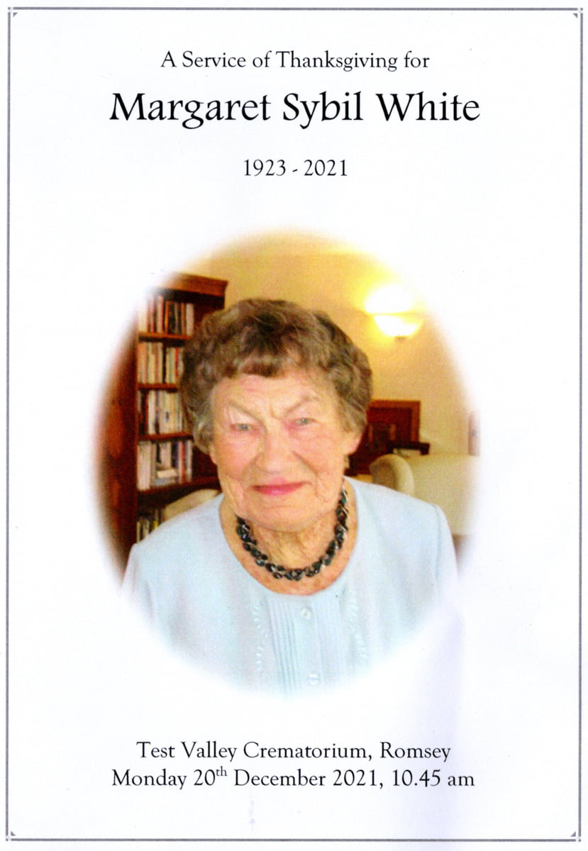 Margaret White (Cox) 28.10.1923 – 26.11.2021 RIP