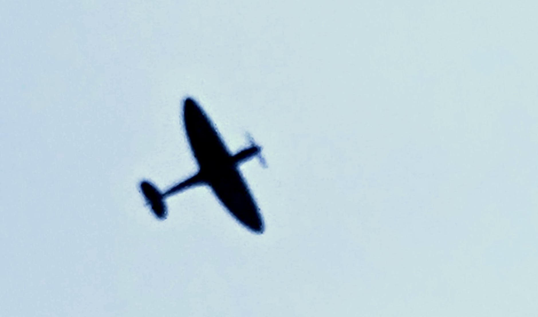 The clouds were low but not too low and, right on cue at 11.37, one of the Spitfires.com planes from Lee on Solent flew in fast and low before performing several sweeping turns and aerial manoeuvres. The sight and sound of the display was hugely appreciated by all who saw it and no doubt left a few in the area wondering what was going on.