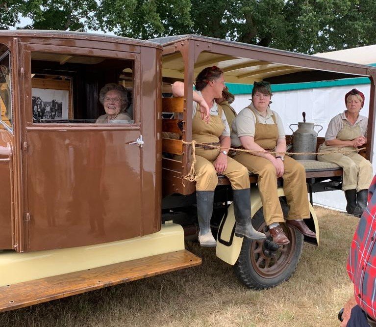 A beaming Edna is pictured re-living her wartime memories, doing a Q&A with ‘the girls’ and being driven around the showground in a vintage farm truck.