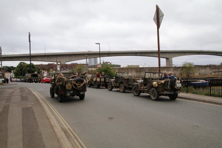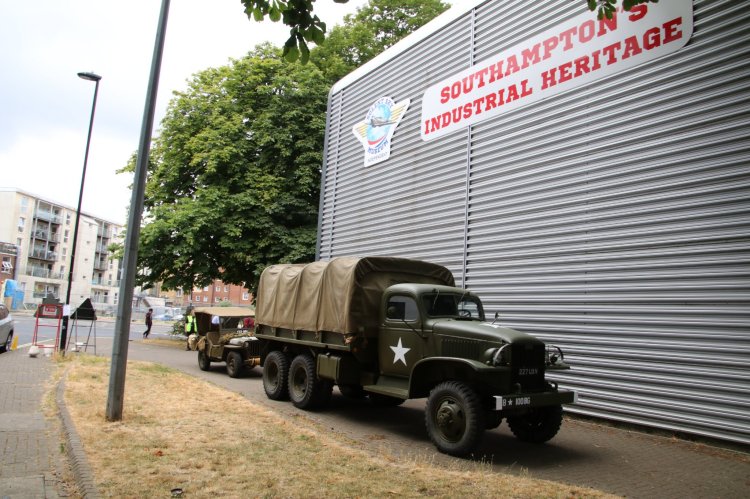 The convoy of over a dozen WWII vehicles started from the sites of Supermarine Woolston annd Itchen Works,pausing at some of the many dispersed Spitfire production sites around the city before ending up at Solent Sky Museum.