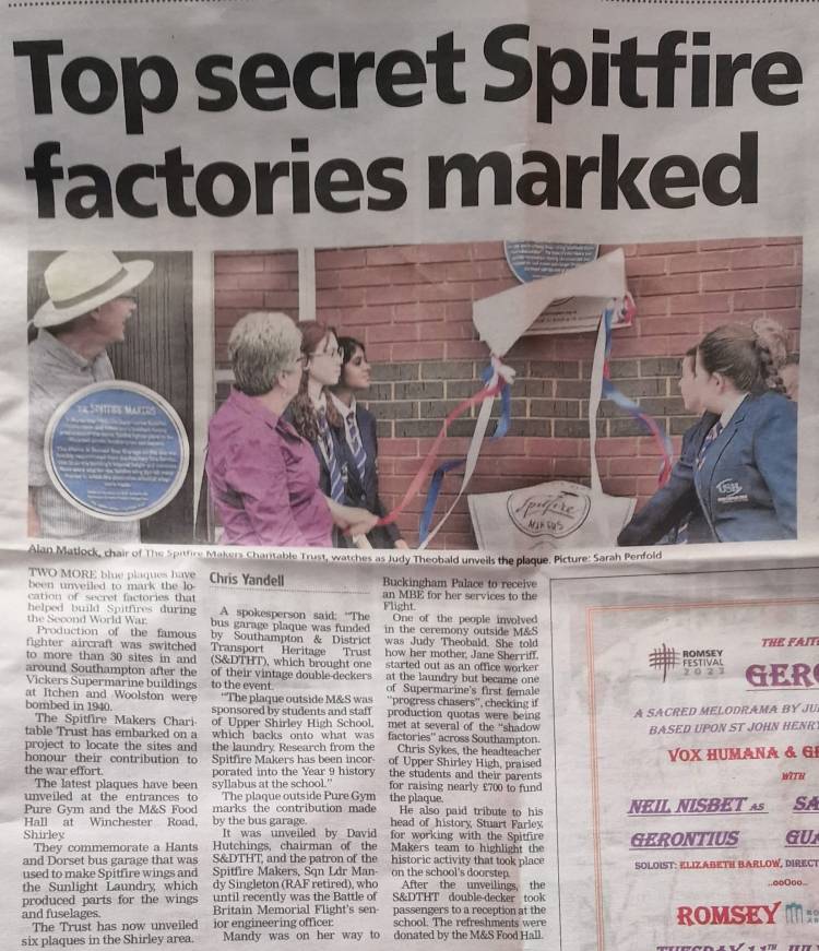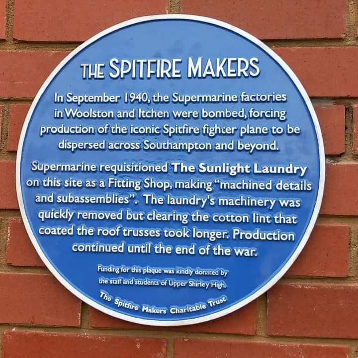 The plaque outside M&S was sponsored by the students and staff of the Upper Shirley High School whose premises back onto what was the Laundry. Research from the Spitfire Makers Charitable Trust project has been incorporated into the Year 9 history syllabus at the school.
