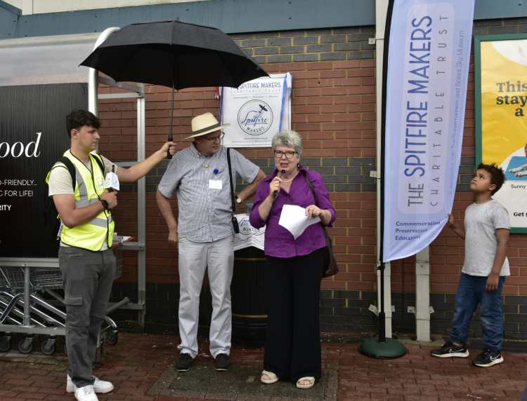 The second plaque, outside M&S, was unveiled by some of the student fundraisers from Upper Shirley High and Judy Theobald, who spoke movingly about how her mother, Jane Sherriff, started as an office worker in the Laundry but became one of the first two women ‘progress chasers’ for Supermarine, checking production quotas were being met in several of the ‘shadow factories’ across Southampton.