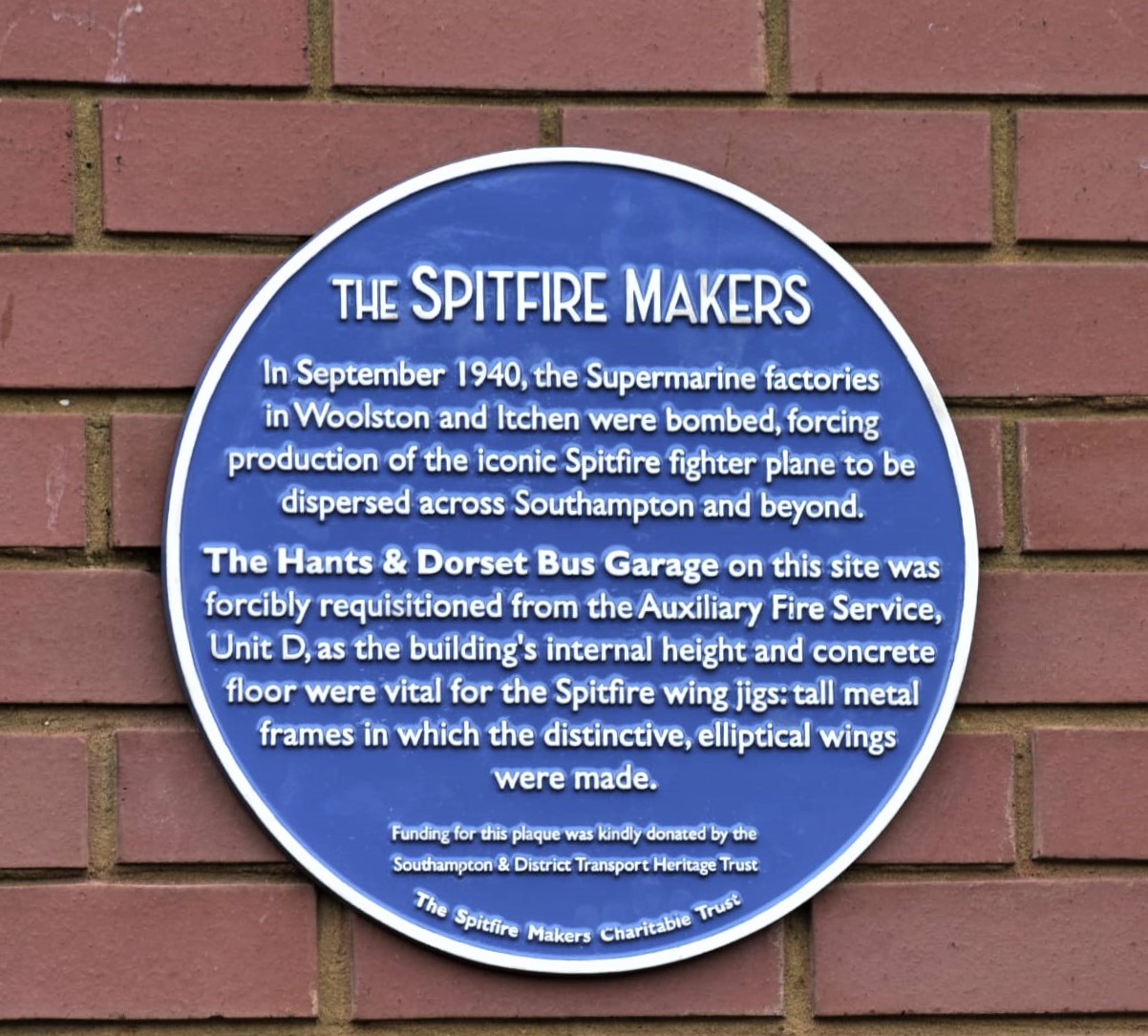They commemorate the Hants and Dorset Bus Garage which was turned over to making Spitfire wings and the Sunlight Laundry which produced parts for the wings and fuselages. With these two, the Spitfire Makers Charitable Trust have now placed six plaques in the Shirley area.