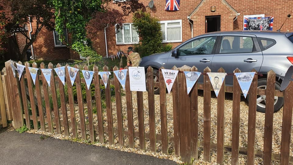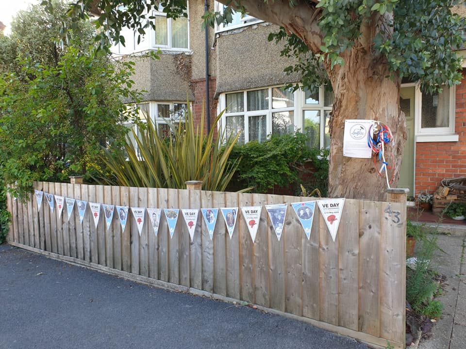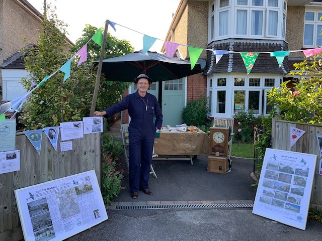 When the lockdown prevented the VE Day 9th May history exhibition, the Spitfire Makers team took the exhibition and celebrations to their front gardens. Pictured as an ARP warden, Chair of Spitfire Makers Alan Matlock, with his front garden display on Radway Road, Upoer Shirley. Spitfire Makers bunting was also displayed on Gurney Road Shirley and Hillary Close Lyndhurst. If a member of your family was a Spitfire Maker in the Southampton / Hampshire area, we would love to add their faces to our bunting display for future events.
