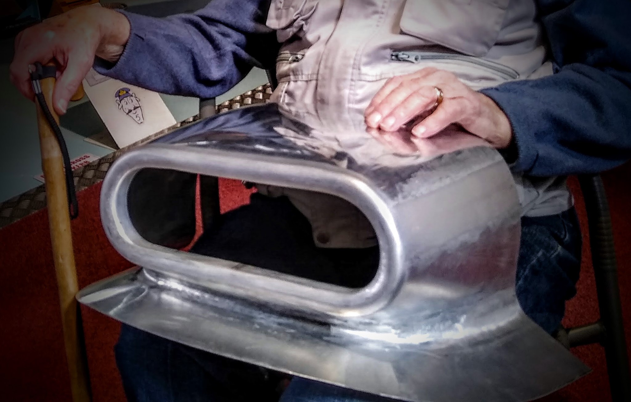 After he left school, Don worked for Supermarine subcontractor Auto Metalcraft in Emsworth Road, Shirley, Southampton and then went on to work as a conductor and trainee driver on the Southampton trams. He also served in the Home Guard and the bayonet he never handed in at the end of the war will now have a home at the Museum. In front of the Solent Sky Mark 24 Spitfire Don was able to hold a Spitfire air intake, one of the same parts he used to make, for the first time in 80 years. This was one of several items loaned to the museum, specifically for Don’s visit, by Southampton-based aircraft parts maker Mark Cole who produces airworthy replica parts for Spitfire restorations.
