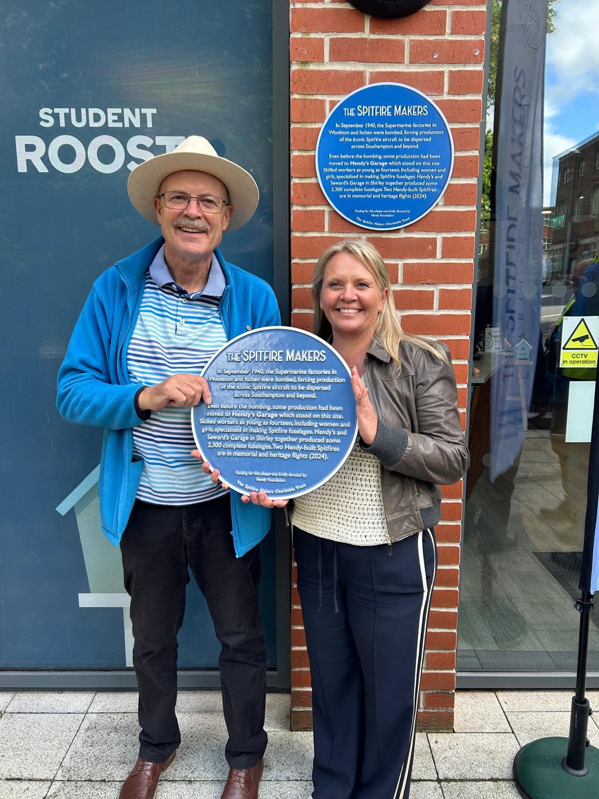 The latest Spitfire Makers plaque has been unveiled at the entrance to the Student Roost building in Vincents Walk, Southampton.