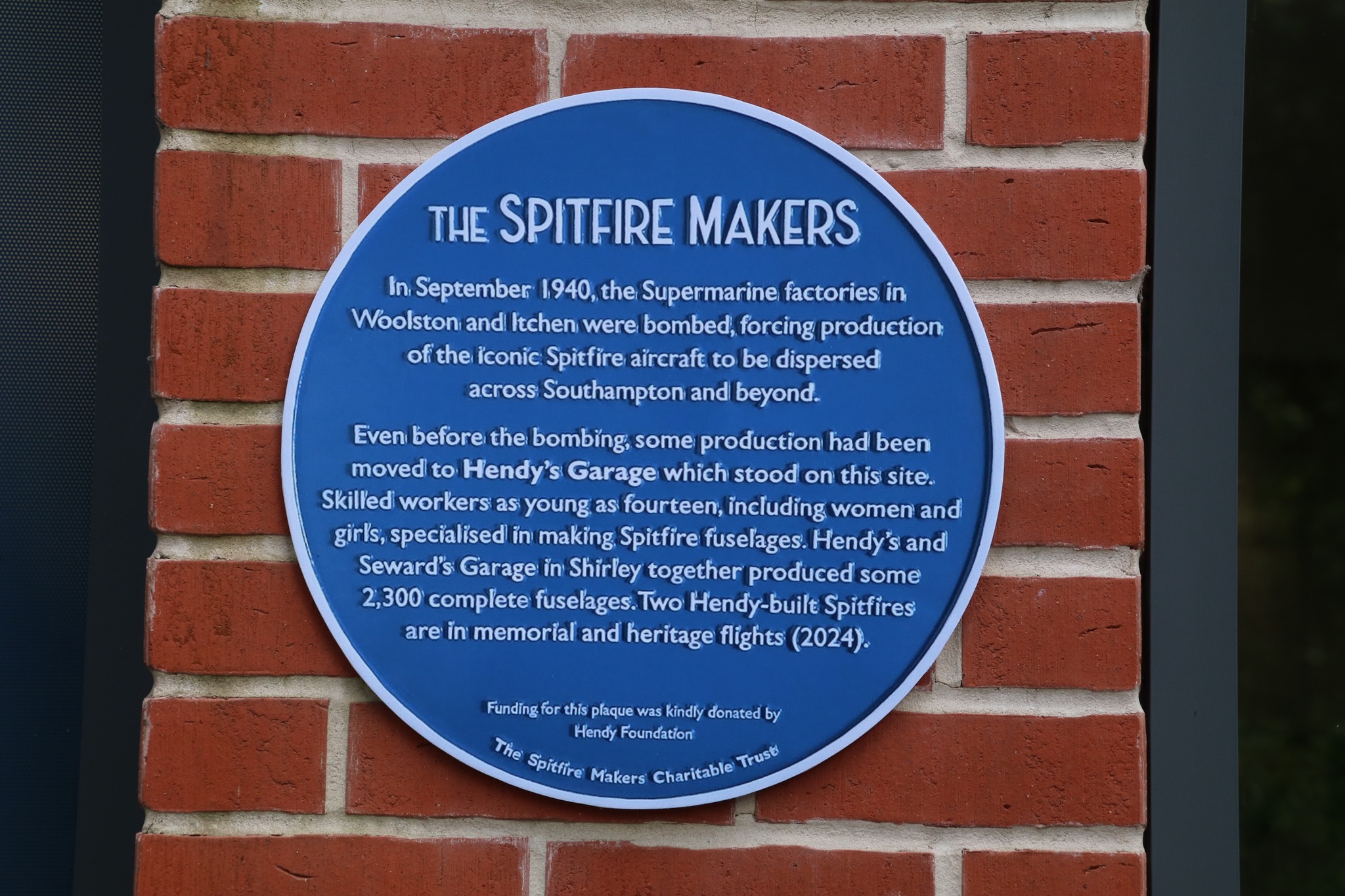 The plaque has been kindly sponsored by Hendy Foundation, the first of two they have funded.