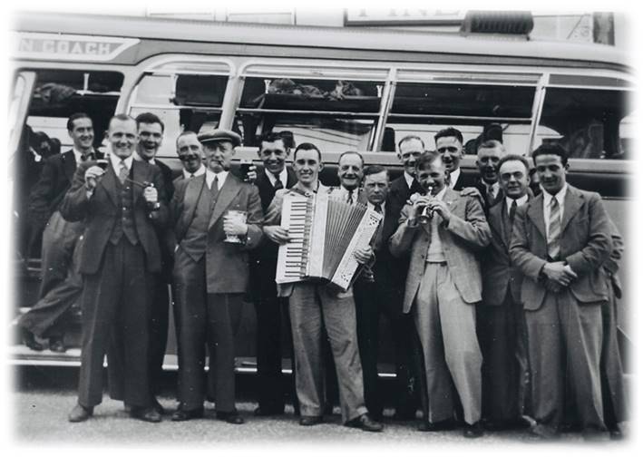 The photos below are just a few from a wonderfully detailed autobiography of his whole life that they have shared. I think that’s Charles in the middle of the front row of an infants class at Ludlow School. He’s pictured with his Hercules Roadster which “could be bought for 3 pounds 18 shillings and 6 pence”. He thought nothing of a day trip to Sandbanks and back. Again it’s Charles with the accordion in the middle of the front row on a Supermarine Works Outing in 1938.