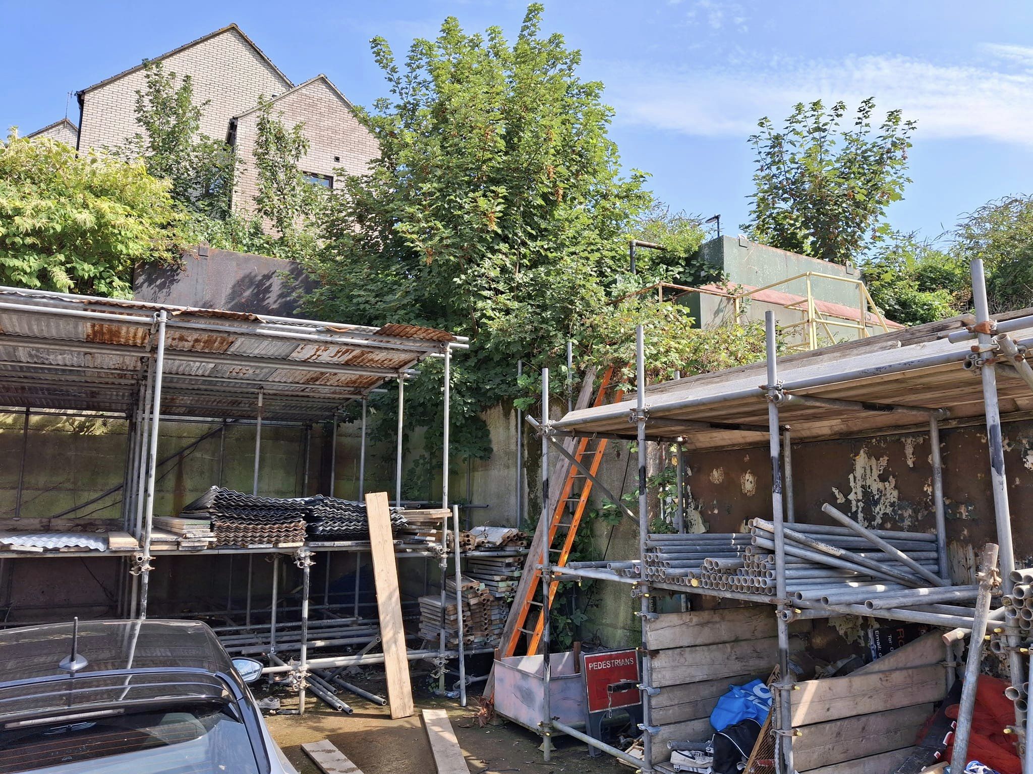 Do you know anything about these places or, perhaps more interestingly, the solid concrete wall behind them with what look like (now disused?) oil tanks on top – see photo. In one or two places it looks like entrances into the hillside behind the wall have been blocked up. Wartime accounts mention air raid shelters here and an oil tank being hit.