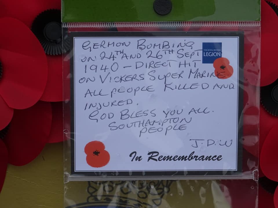 Poppy Crosses were put out at Various Supermarine Locations in Southampton to Honour the “Supermarine Fallen killed on the Raids on 24th September 1940 & September 26th 1940.