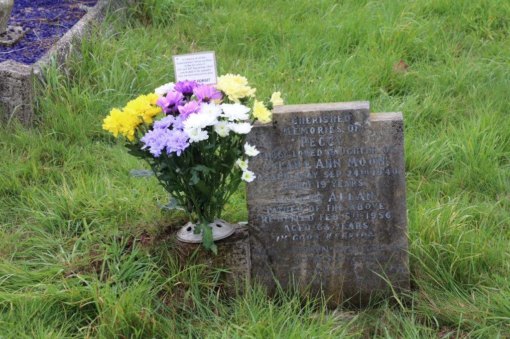 “One of the “Supermarine ” Fallen on 24th September 1940, Margaret ” Peggy ” Moon, Aged 20, Clerk Typist, Known as ” The Girl in Green.” St Mary Extra Cemetary, Southampton.