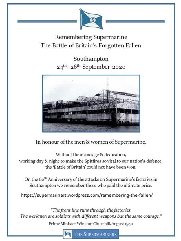 Over a few days at the end of September 2020, The Spitfire Makers Charitable Trust were proud to join David Key of The Supermariners website, Solent Sky Museum, the Spitfire Society, and volunteers from several local history groups in Southampton to remember those who died in this, and the following raid on Thursday the 26th September 1940.
