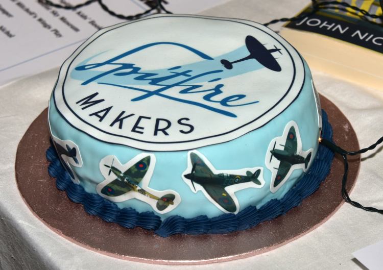 Mandy and Mark stayed on to draw the winning tickets for the Raffle. First prize was a signed print of a BBMF Spitfire (kindly donated) but there was also a delicious Spitfire Ale hamper, a Spitfire Makers cake and a signed copy of “Spitfire Kids” by Alasdair Cross (in which Don Smith’s story is mentioned).
