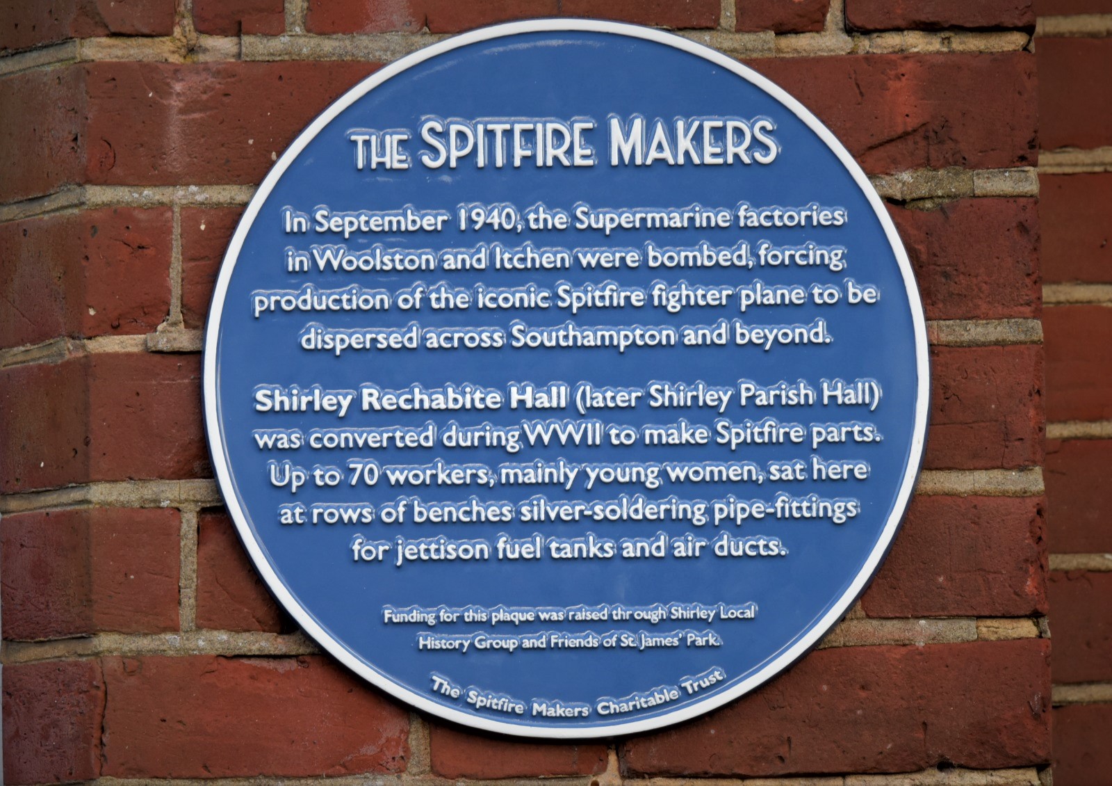 Our first plaque, unveiled nearly 4 years ago in March 2022 was one such site – the requisitioned parish hall in Shirley where drop tanks and air filters were made.