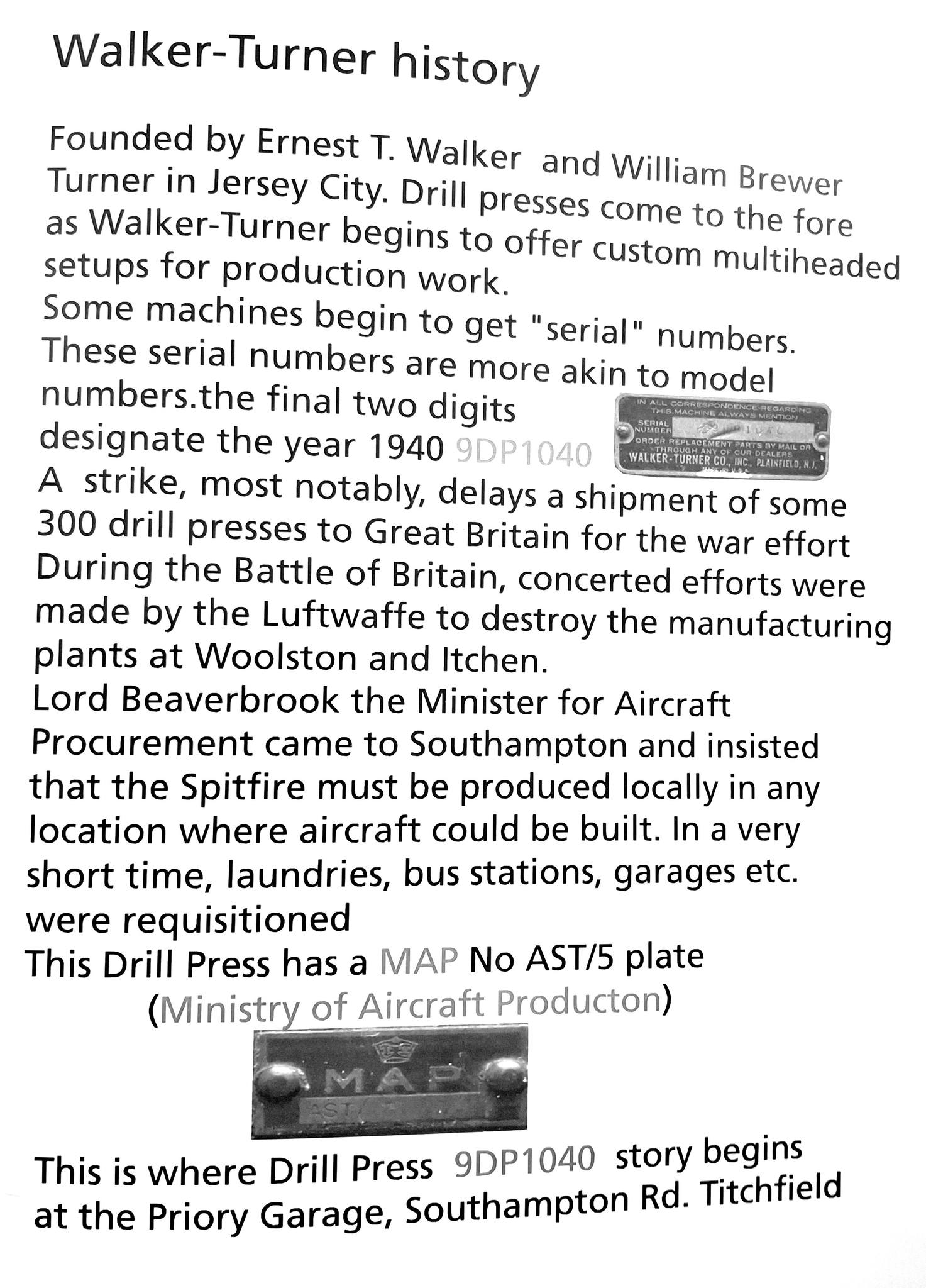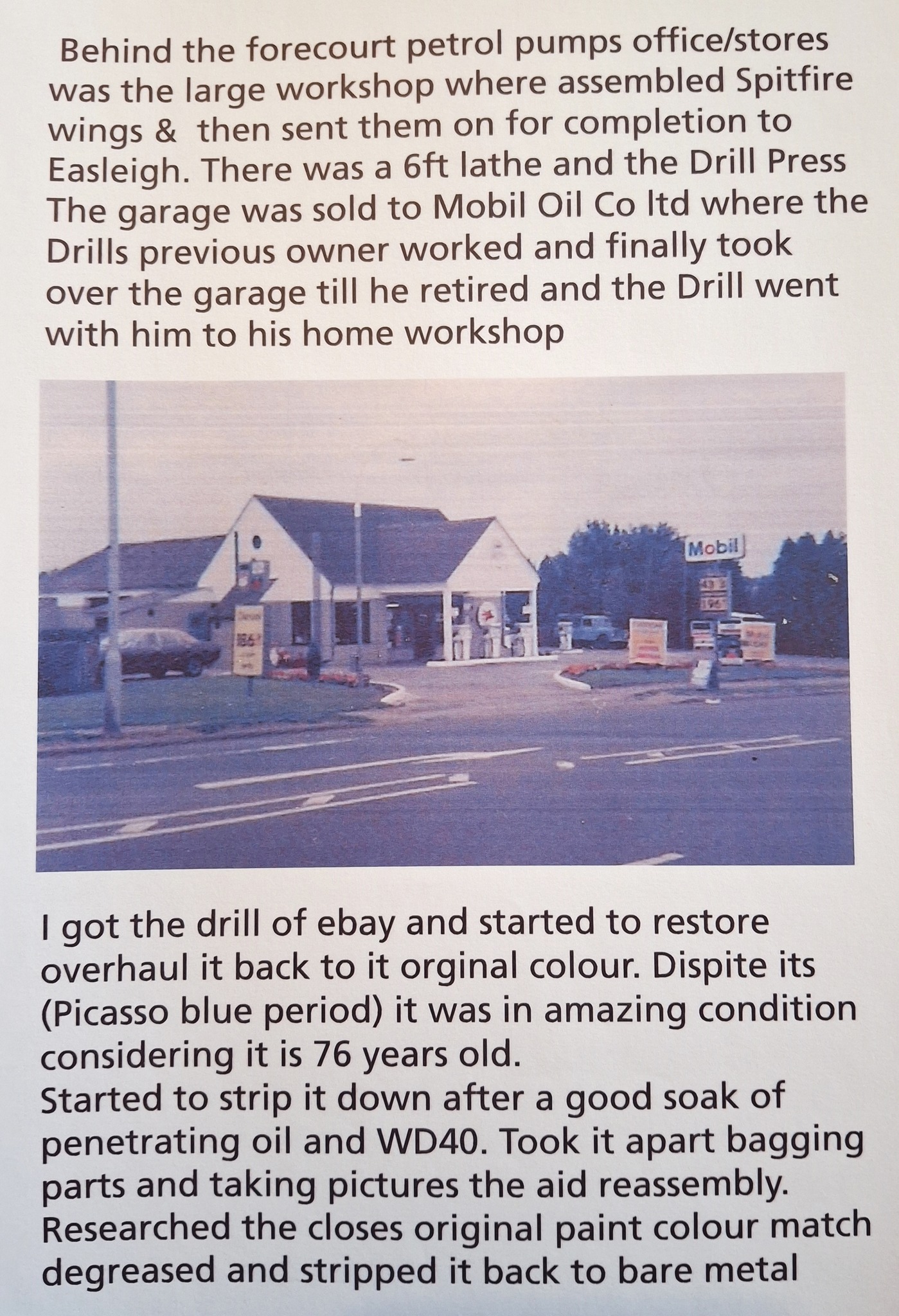 Evidently, an American pillar drill issued by the for use by Air Services Training, Hamble, was used in the Priory Garage on Titchfield Hill when it was commandeered to make parts for aircraft, including Spitfires.