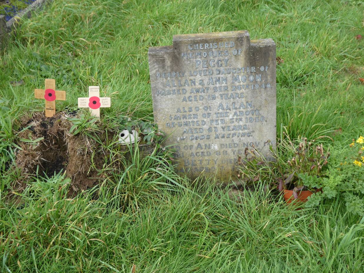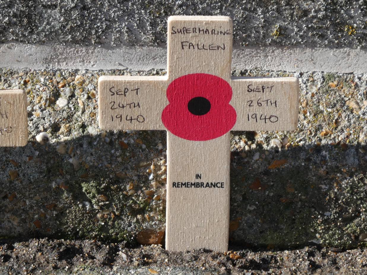 A Poppy cross was put on the grave of one of the ” Supermarine Fallen”, at St. Mary Extra Cemetery, “Peggy Moon ” Known as the (Girl in Green). A Photo of which is included.