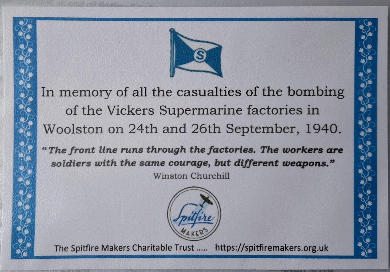 Winston was absolutely right when he said, “The front line runs through the factories, the workmen (and women!) are soldiers with different weapons, but the same courage.”