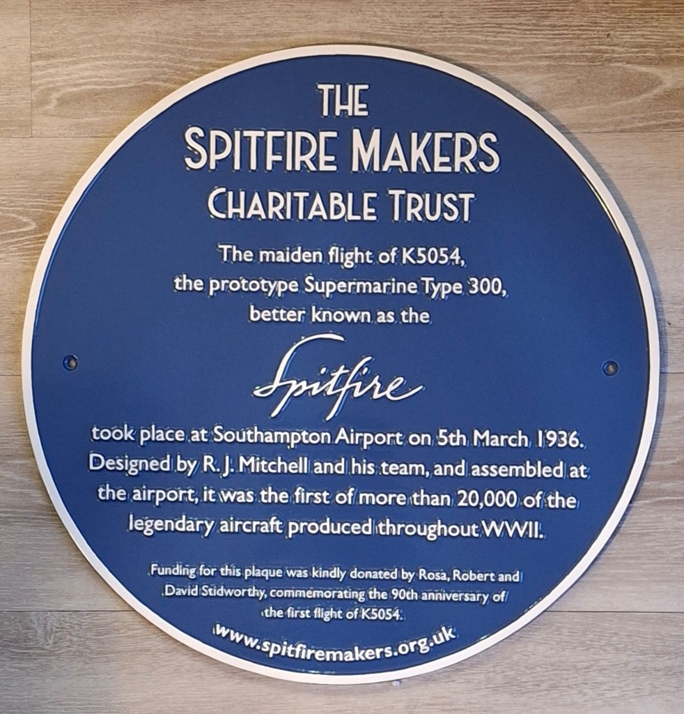 On 5th March 2026 we unveiled a plaque to commemorate and celebrate the 90th Anniversary of Supermarine’s most iconic aircraft. It is placed in the main terminal at Southampton Airport – previously known as Eastleigh Aerodrome – together with a World Origin Site plaque and some amazing artwork depicting the history of the Spitfire.