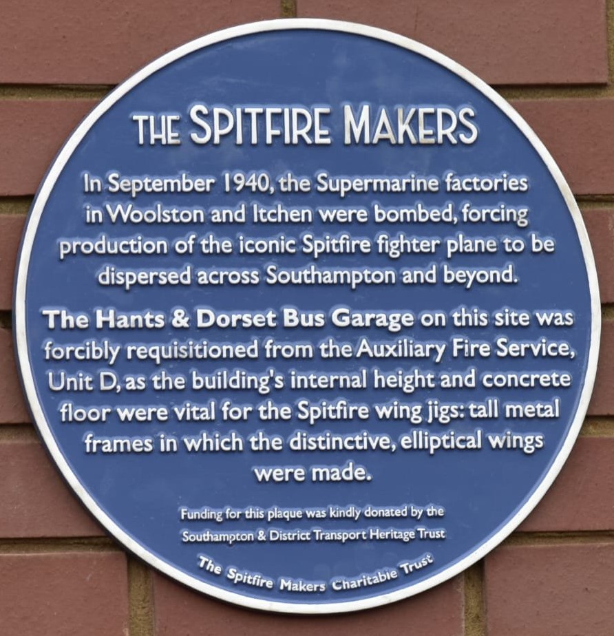 A second plaque was unveiled on the day to commemorate the Hants and Dorset Bus Garage which was turned over to making Spitfire wings. See details below.