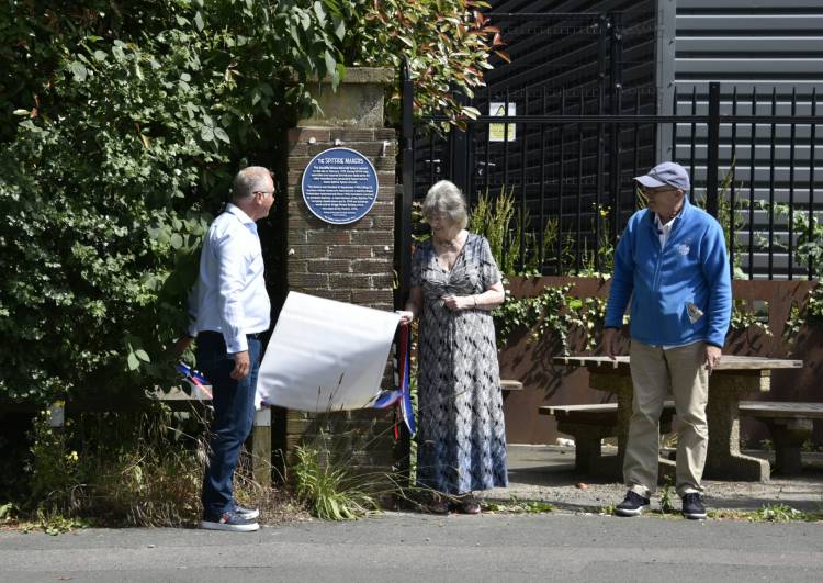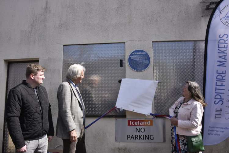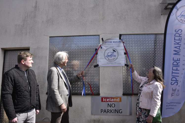 The plaque was unveiled by Alderman Linda Norris, who sponsored the plaque, and Glenys May whose father, Claude W Cox, was a Spitfire Maker who survived the September 1940 bombings.