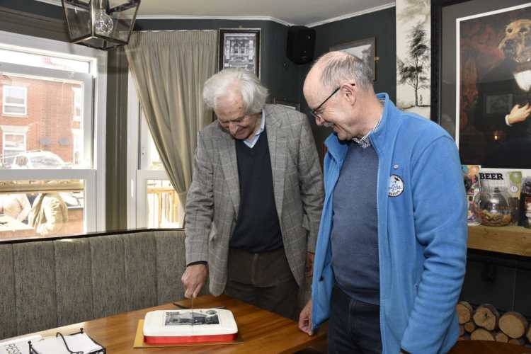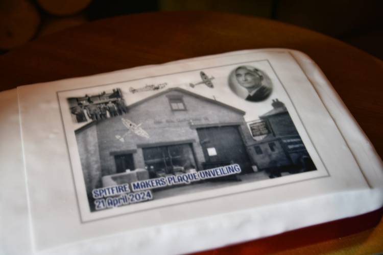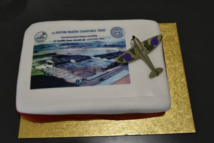 After the unveiling the Spitfire Makers Charitable Trust hosted the guests at the nearby Fleming Arms where a specially commissioned cake was cut by John Ferrerolli and the chair of the Trust, Alan Matlock.