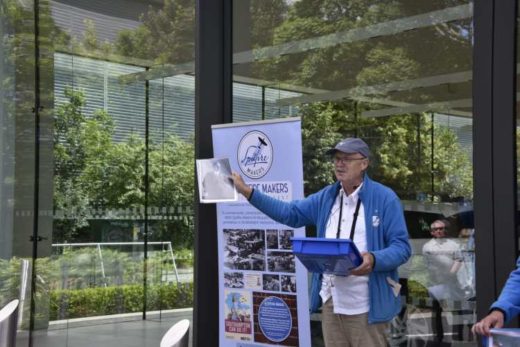 On Monday Mr Sam Collins, area manager for The Hyde Group, helped Spitfire Makers Chair, Alan Matlock, with the action replay of the unveiling along with members of the Southampton U3A Local History Group.