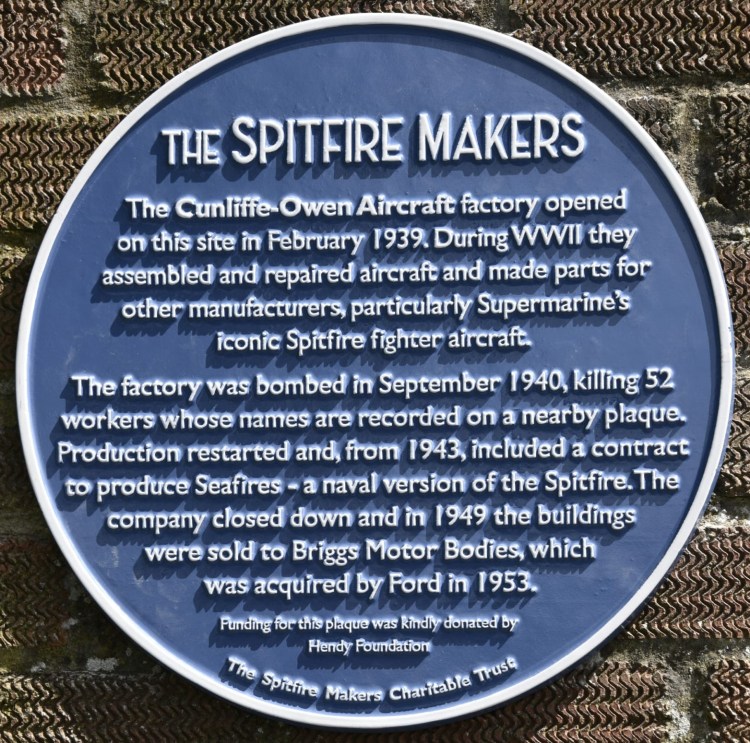 - To commemorate sites of Spitfire production and the people who became Spitfire Makers in Southampton, Hampshire and other locations by producing memorial plaques and/or education boards to inform the public about these sites.