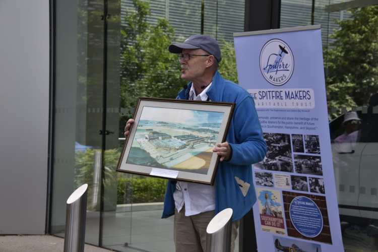 Before the unveiling, Spitfire Makers’ chair, Alan Matlock, spoke about the factory’s history and its connections to the Spitfire. Among the items on show was a framed copy of the painting of the factory which used to hang in the manager’s office.