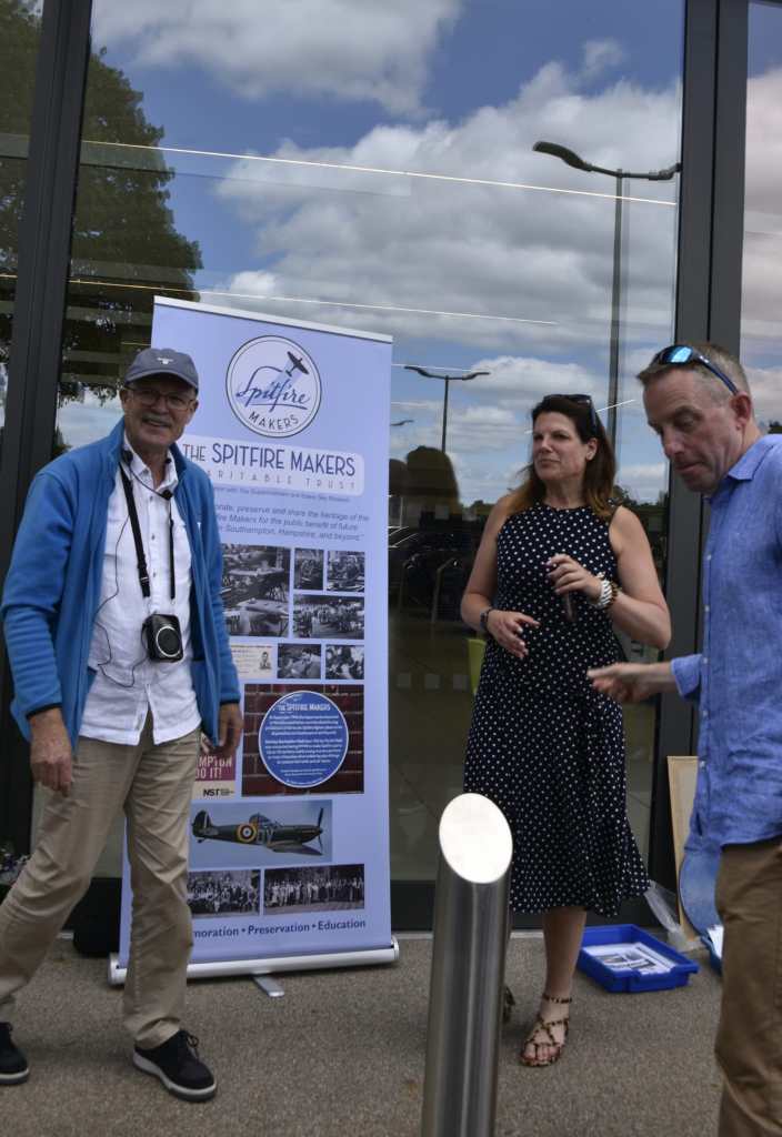 The plaque was appropriately funded by the Southampton & District Heritage Transport Trust (S&DTHT) and was unveiled by David Hutchings, chair of the S&DTHT and, the patron of Spitfire Makers, Sqn Ldr Mandy Singleton (RAF retired), who was until recently the Senior Engineering Officer of the Battle of Britain Memorial Flight.