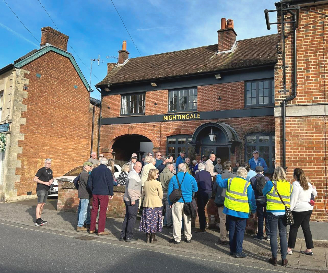 There were around 50 invited guests (and a sleek black cat !) who stood on the sunny patio of the Nightingale pub to hear how Romsey Precision Engineering Ltd came to be making bolts for the iconic Spitfire on the corner of Latimer and Portersbridge Street.