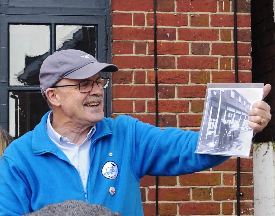 Alan thanked Brian Hooper, of Shirley Men’s Shed, who once again set the plaque in place and Tom Bond, manager of the Shirley branch of Iceland, who helped organise permission for the plaque to be put on the building which is now their storeroom. After the unveiling Tom opened up the storeroom and guests were able to have the rare experience of standing inside a secret Spitfire workshop!