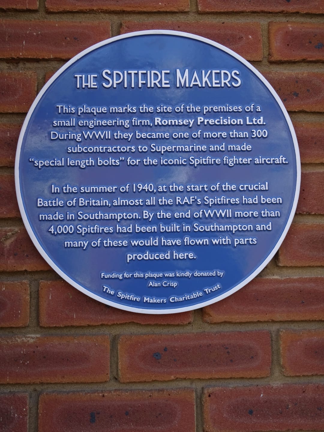 The plaque was sponsored by The Spitfire Makers Charitable Trust