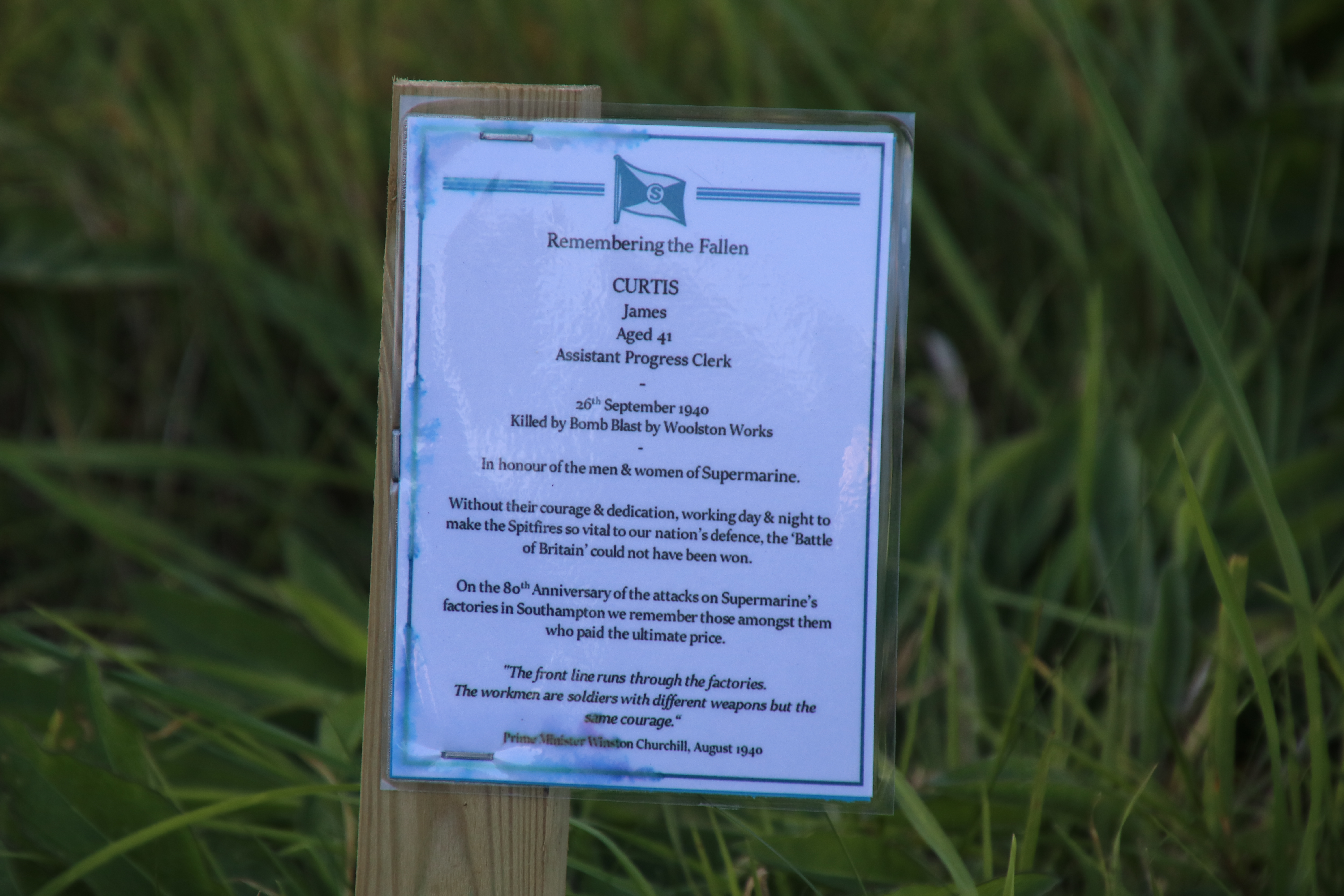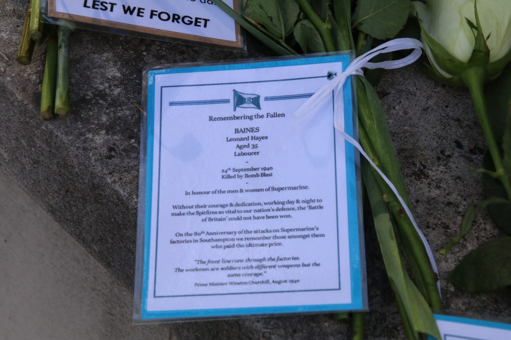 Frederick worked at the Cunliffe-Owen factory at Eastleigh Airport assembling Spitfires. He was killed in the bombing raid on the factory on 11th September 1940. Frederick’s daughter Helen Corben, who was 7 years old when her father was killed, unveiled the Spitfire Makers plaque in June 2024 to commemorate the workers at the factory.