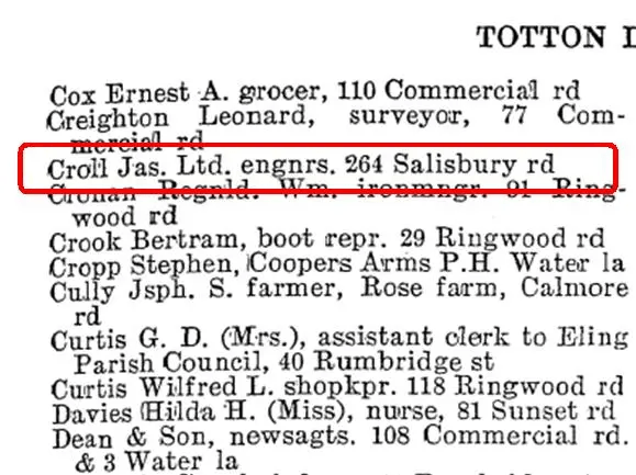 Others have written to let us know of their involvement with Croll’s and, although memories may have faded, it would seem that there may well have been more than one building along Salisbury Road, Totton, which was owned by them.