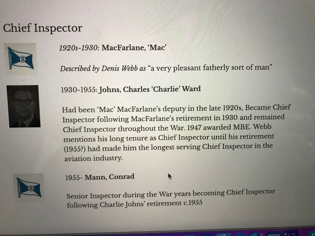 My grandfather started working for R L Howard – Flanders at Brooklands in 1909, joined the Martinsyde Company in 1912 as Flight Engineer and later Works Manager. They made both planes and, after WW1, motorbikes. He also worked on the BE2c at Vickers in Dartford. He was involved in the Larkhill Trials on Salisbury Plain where planes were chosen to join the Army’s Air Battalion. He joined Supermarine in 1922 as Assistant Chief Inspector, later being promoted to Chief Inspector. He was still at Supermarine during the War and gets a mention in Geffrey Quill’s book “Spitfire. A Test Pilot’s Story”. I know that he went to Singapore, Argentina, Japan (1928) and Ireland (1931), all of which must in those days have been very protracted business trips! Supermarine flying boats were apparently used by the Argentinian Navy, and bought by the Japanese as well. Round about 1947? 1948? he must have been involved in the development of the Cierva Air Horse.
