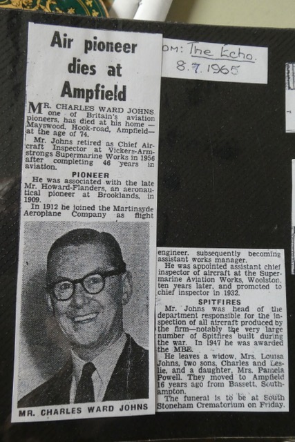 A E Johnson worked at the Cunliffe-Owen factory at Eastleigh Airport assembling Spitfires and was killed in the bombing raid on the factory on 11th September 1940.