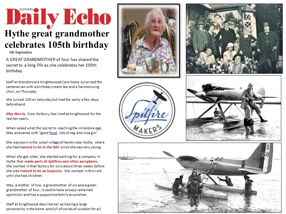 Today we visited a care home in Chandler’s Ford where Spitfire parts inspector May Morris was the guest of honour at a talk followed by tea and cake.